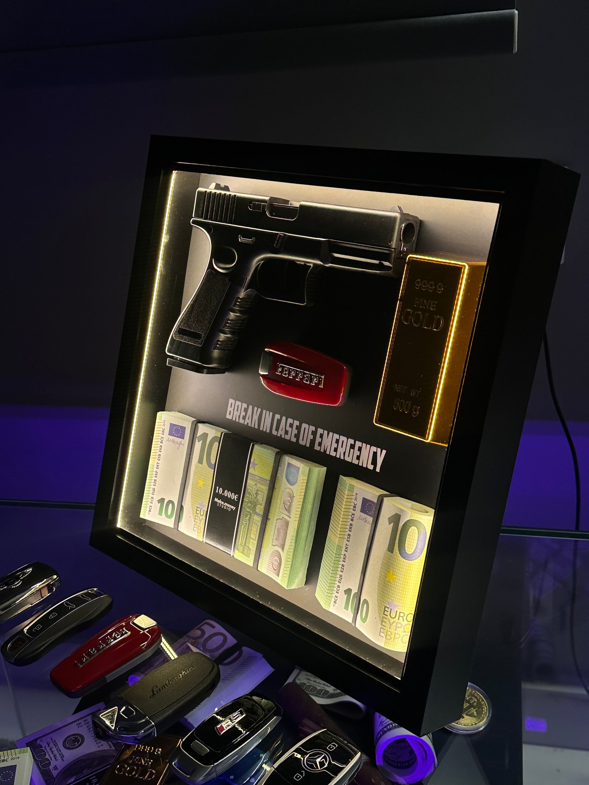 The Billionaire Frame is our ultimate luxury creation – a combination of gold, cash and supercar keys in a handcrafted construction that will turn heads.